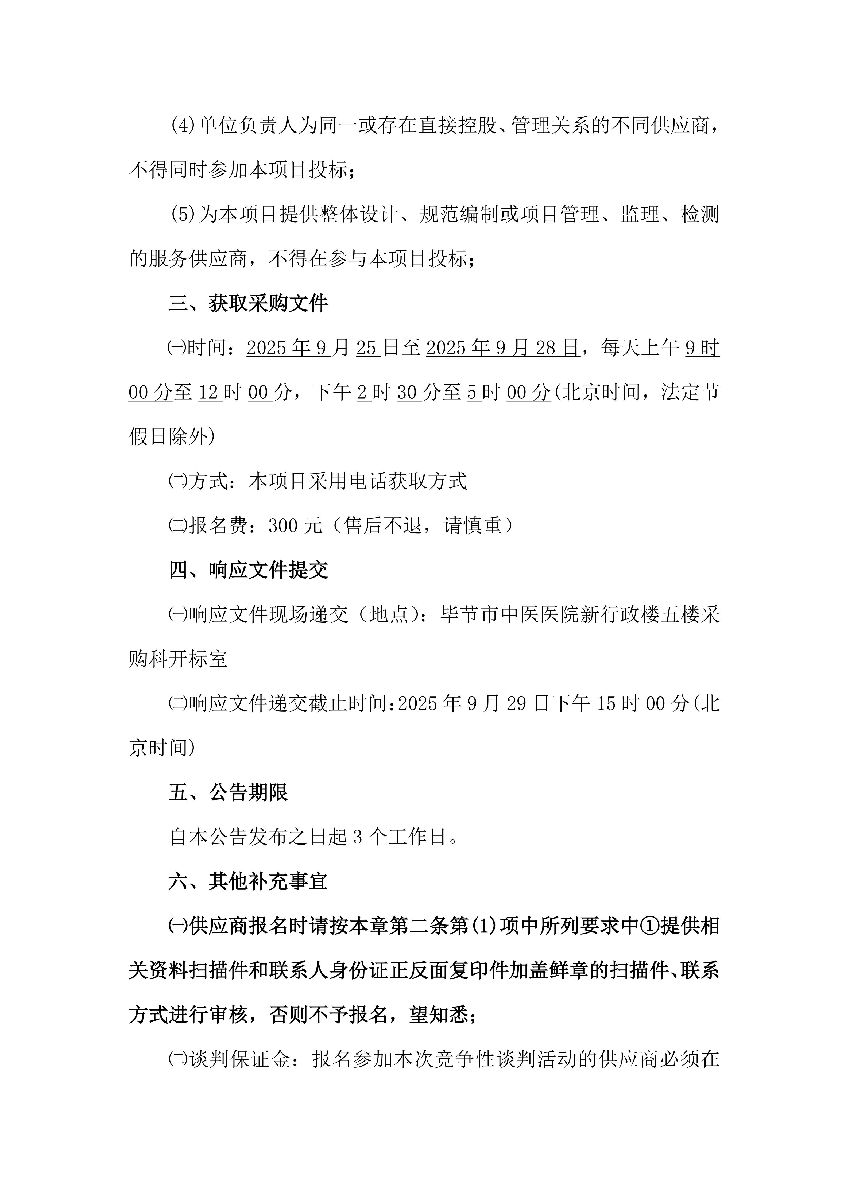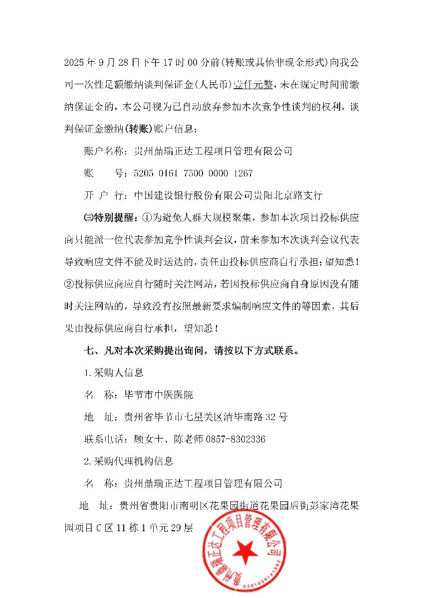 毕节市中医医院住院楼防火门项目(二次) 竞争性谈判公告