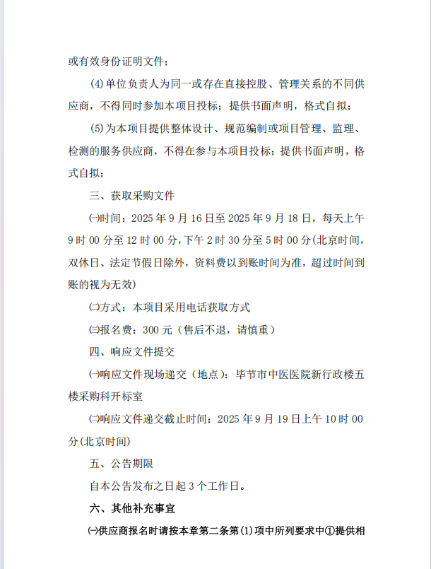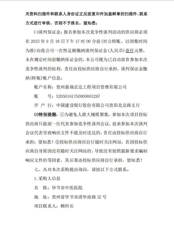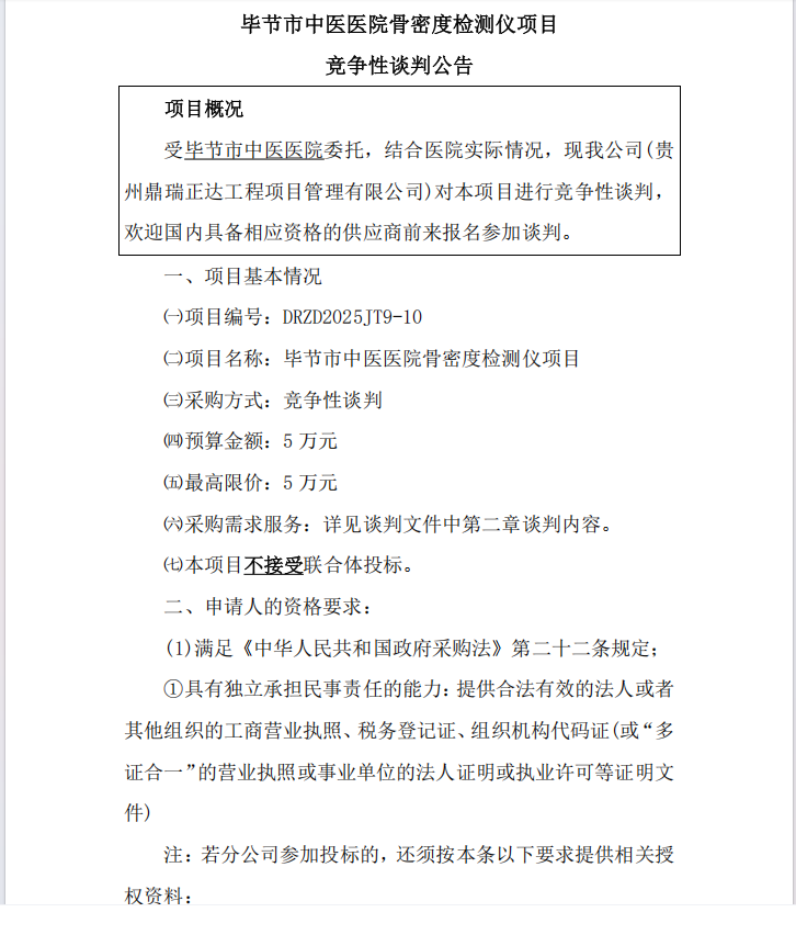 毕节市中医医院骨密度检测仪项目 竞争性谈判公告