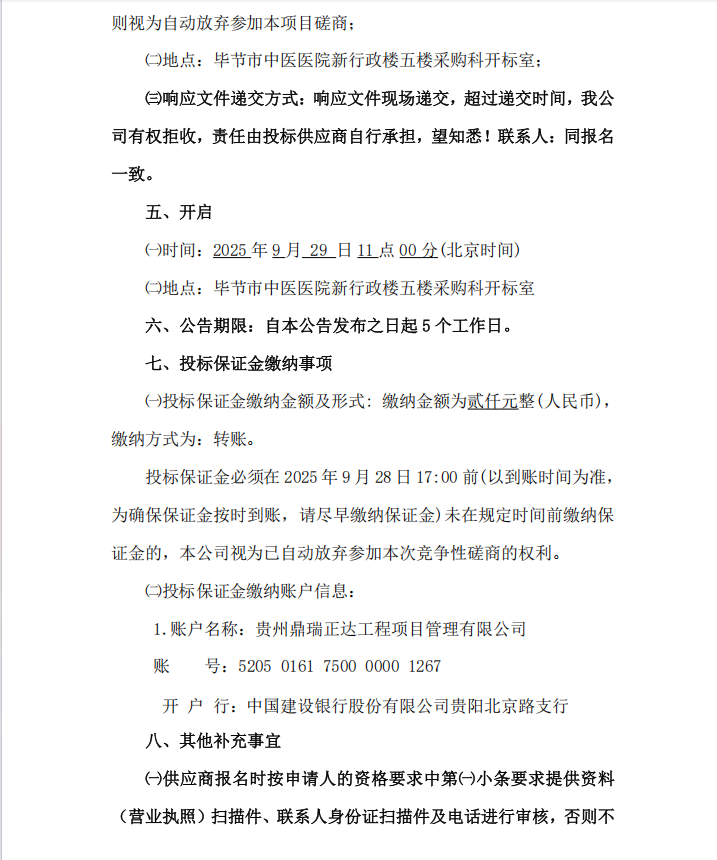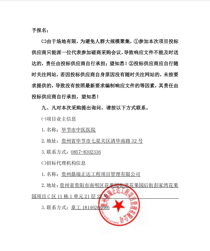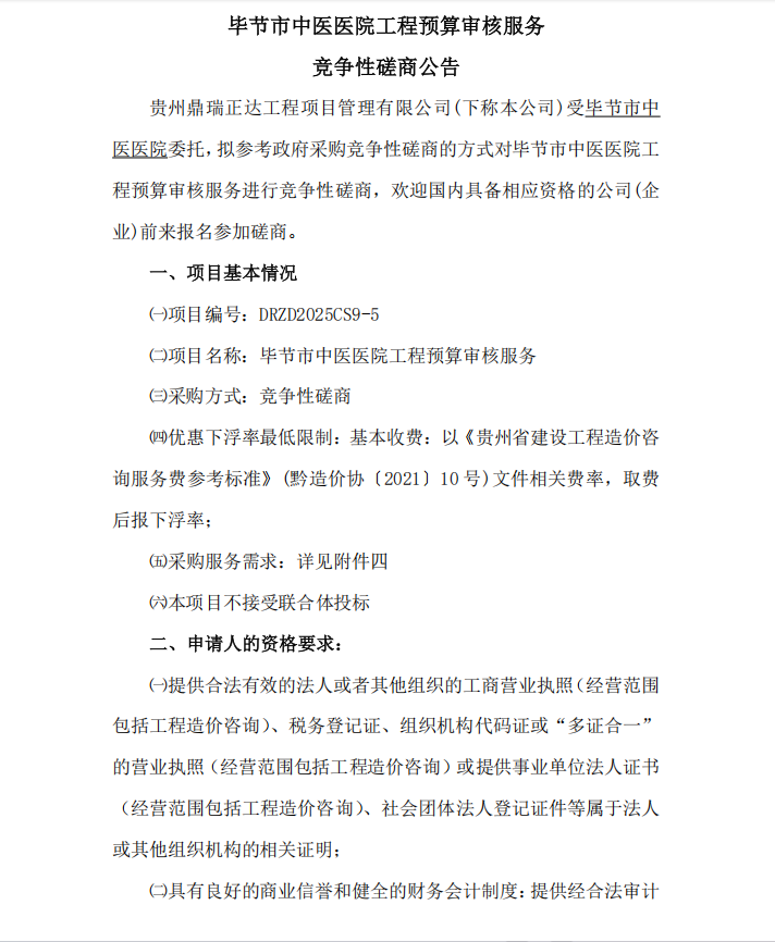 毕节市中医医院工程预算审核服务 竞争性磋商公告
