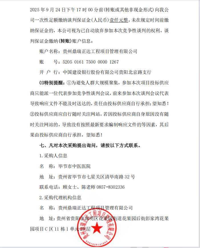 毕节市中医医院住院楼防火门项目(二次) 竞争性谈判公告
