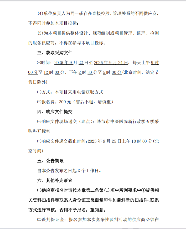 毕节市中医医院工伤体检软件及设备(含接口) 竞争性磋商公告
