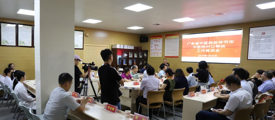 7月25日,广东省中医院副院长刘军、史俏蓉率广东省中医院纪委副书记、党办、院办主任,广东省中医院护理部主任一行17人在毕节市市委常委、副市长姜建静,市政府副秘书长陈震的陪同下,赴我院开展交流考察调研工作,并在远程会诊中心召开广东省中医院帮扶毕节市中医院工作座谈会。我院院长陈德奉、总会计师葛传俊陪同考察和出席座谈会。