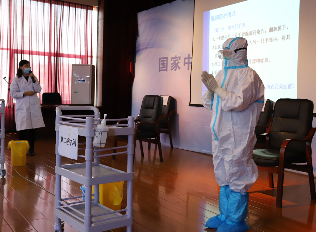 为贯彻落实国家、省、市关于应对新冠肺炎疫情常态化院感防控的相关措施,进一步提高医务人员个人防护能力,实现“医院零感染目标”,保证医疗安全。10月21日,院内感染管理科在门诊七楼会议室组织全院医务人员进行防护用品穿脱培训。培训由院感科科长付善云主持,院感科吴丹做讲解,欧阳子仪进行现场示范,全院不当班医护人员参加培训。