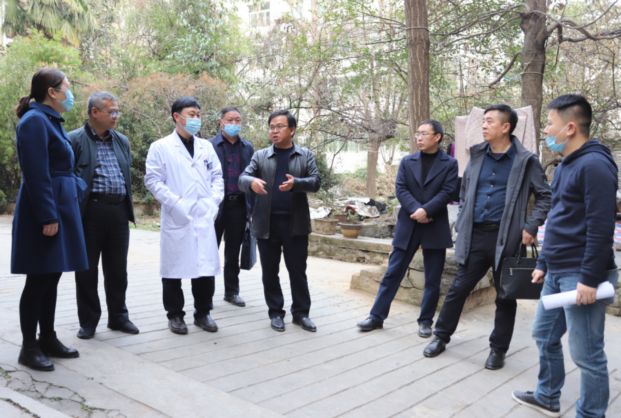2月22日,市卫生健康局党组书记、局长陈德奉到我院调研督导清毕院区改扩建项目进展情况,市卫生健康局党组成员、副局长吴勇参加,我院党委书记吴国春、院长徐全华,党委委员、副院长李珍武,党委委员、纪委书记黄玉龙陪同。